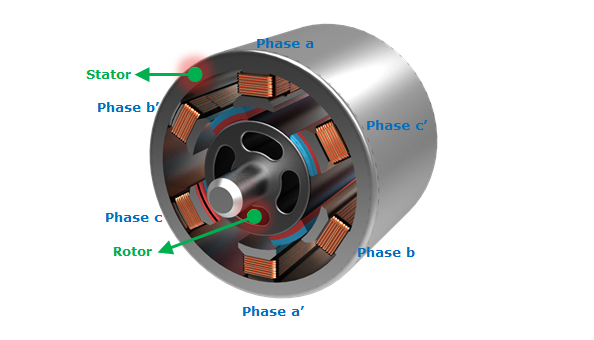 This type of motor is called a Brushless DC motor (BLDC) and a variant of it called a Permanent Magnet Synchronous Motor (PMSM) is what we'll be focusing on in this post.